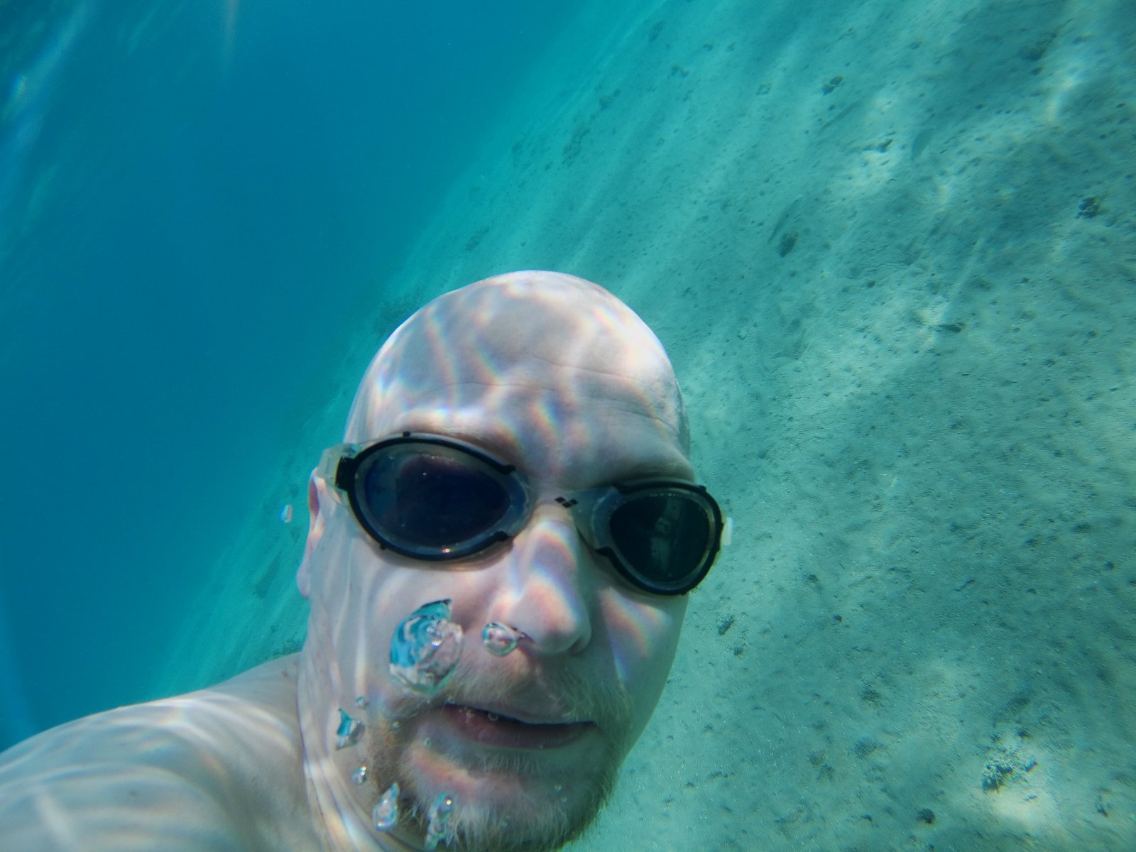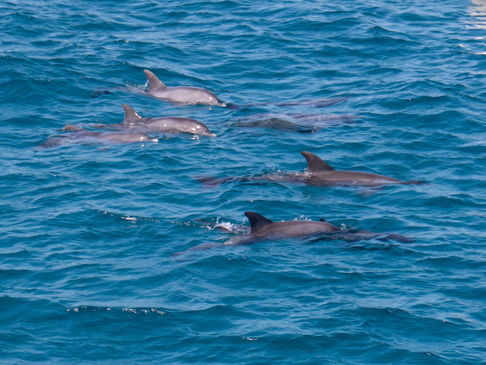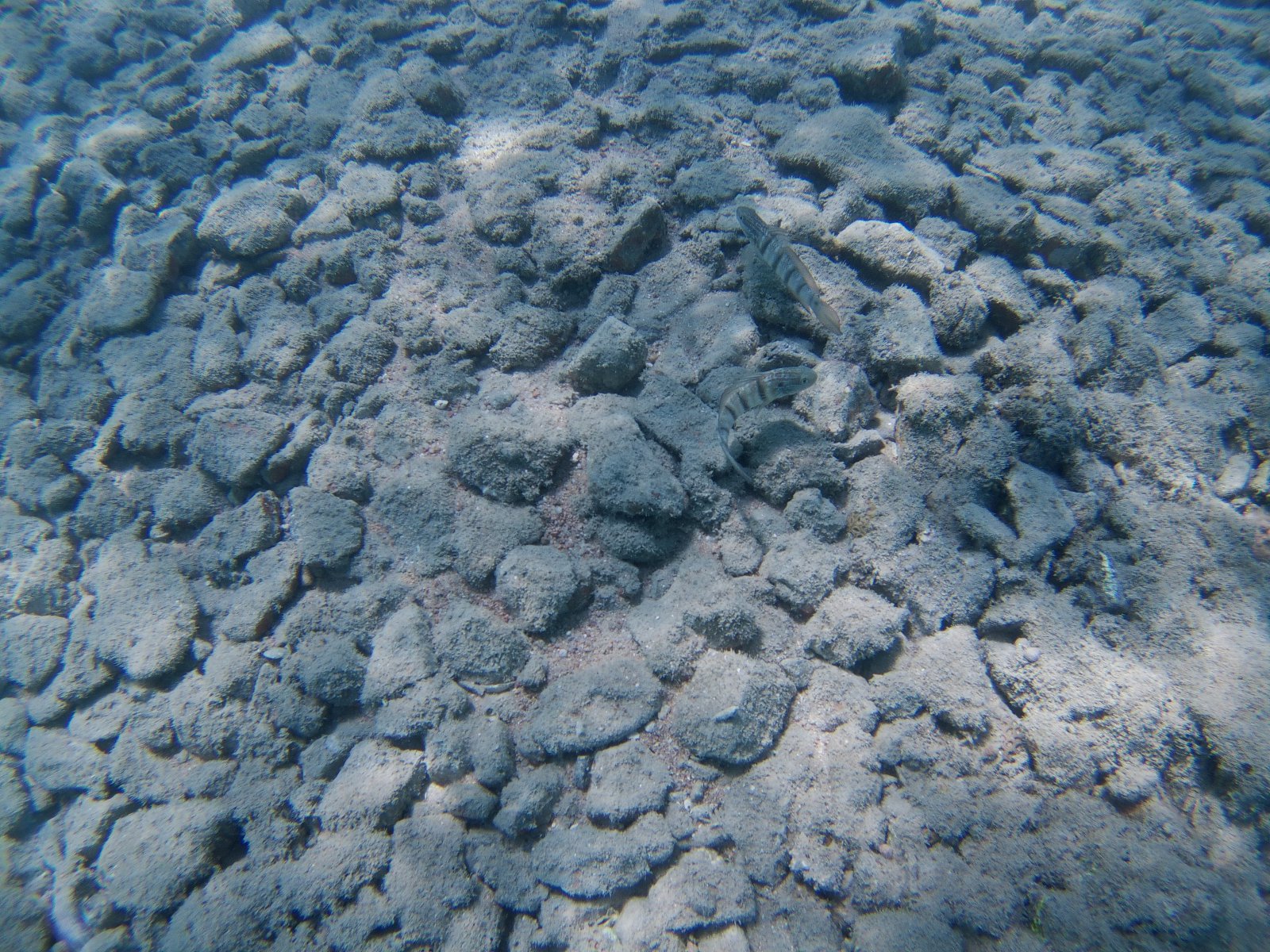Schon am Hotelstrand war der Fischreichtum für mich erfreulich. Ganze Schwärme tummelten sich in Ufernähe und ließen sich kaum von einzelnen Badenden beeindrucken. (Und es waren auch nur einzelne Badende. Wärend ich die Wellen bei einem Wetter genoß, dass mit jeden deutschen Sommer mithalten kann, war es vielen anderen Touristen wohl doch etwas zu kalt.)