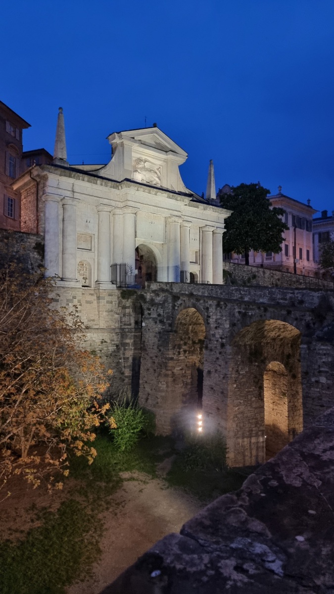 Bergamo, lombardisch Bèrghem, hat knapp 120.000 Einwohner. Die Stadt ist eine gallische Gründung, ab 196 v. Chr. gehörte Bergomum zu Rom. Die Stadt wurde 452 von Attila geplündert. Später gehörte die Stadt u.a. zum Heiligen Römischen Reich, zur Republik Venedig, zum Kaisertum Österreich, dann zum Königreich Sardinien und schließlich zu Italien. Besonders sehenswert ist die unter Denkmalschutz stehende Oberstadt, Città Alta, mit ihrer beeindruckenden Stadtmauer, dem Dom und vielen weiteren Sehenswürdigkeiten.
