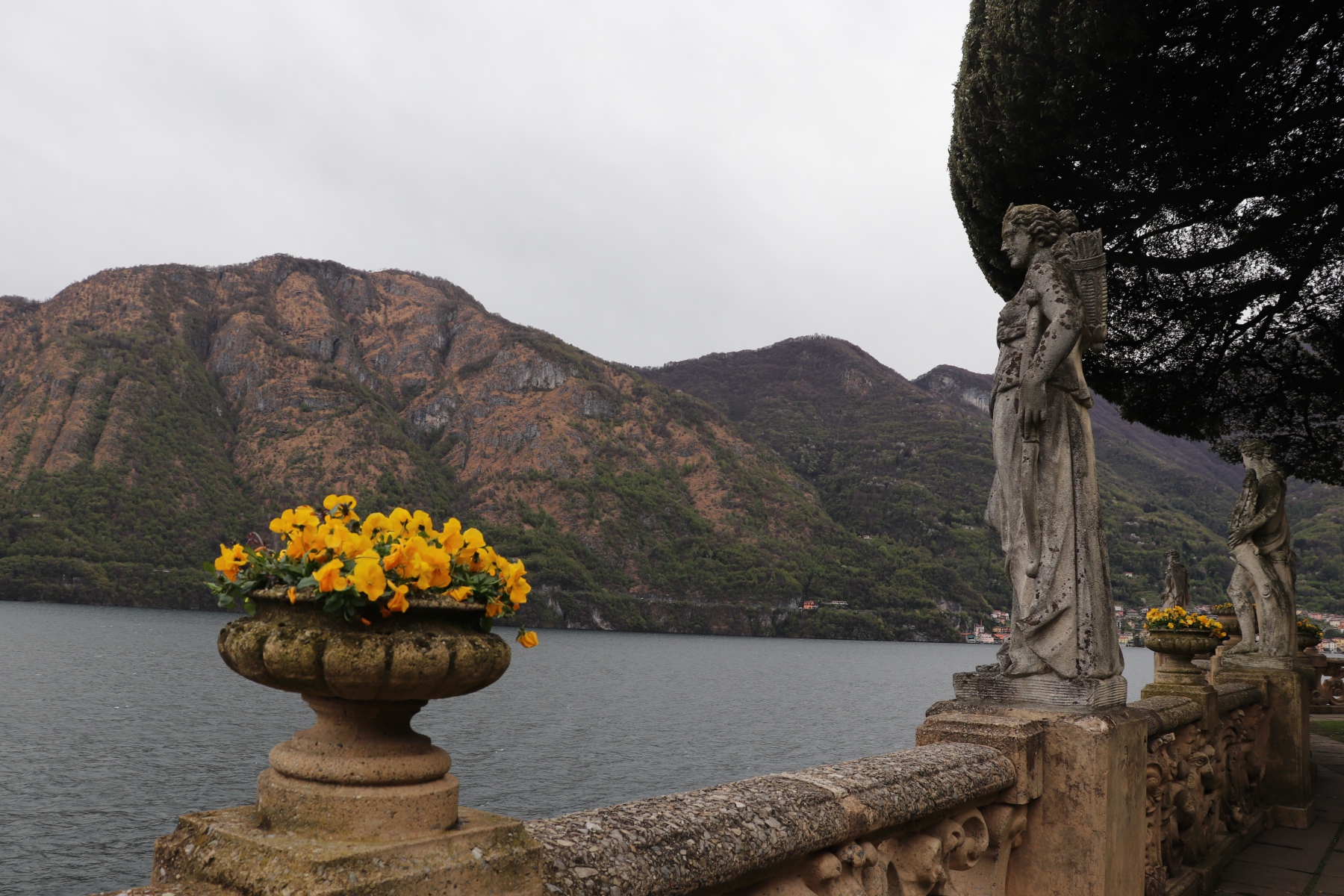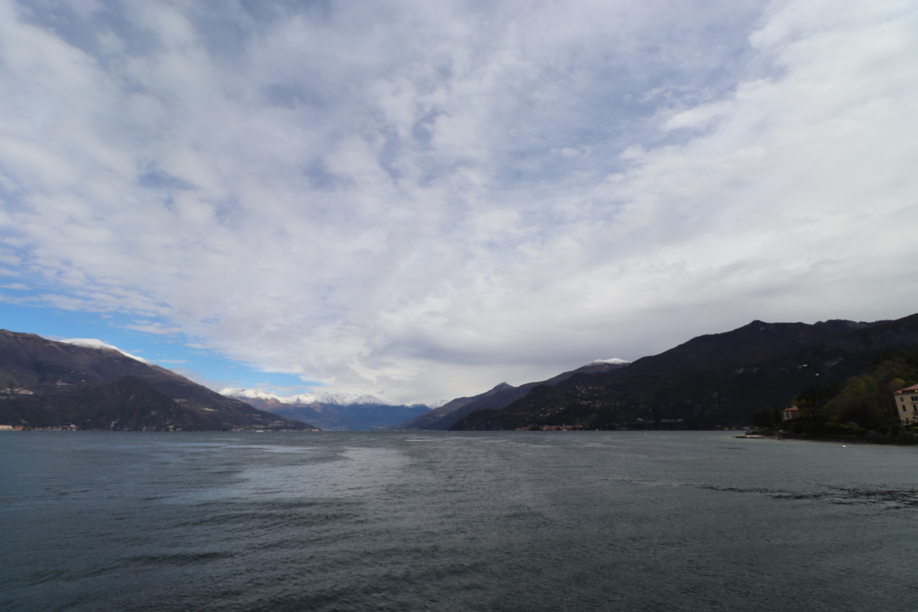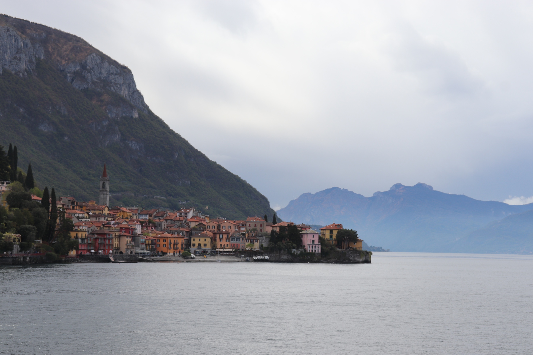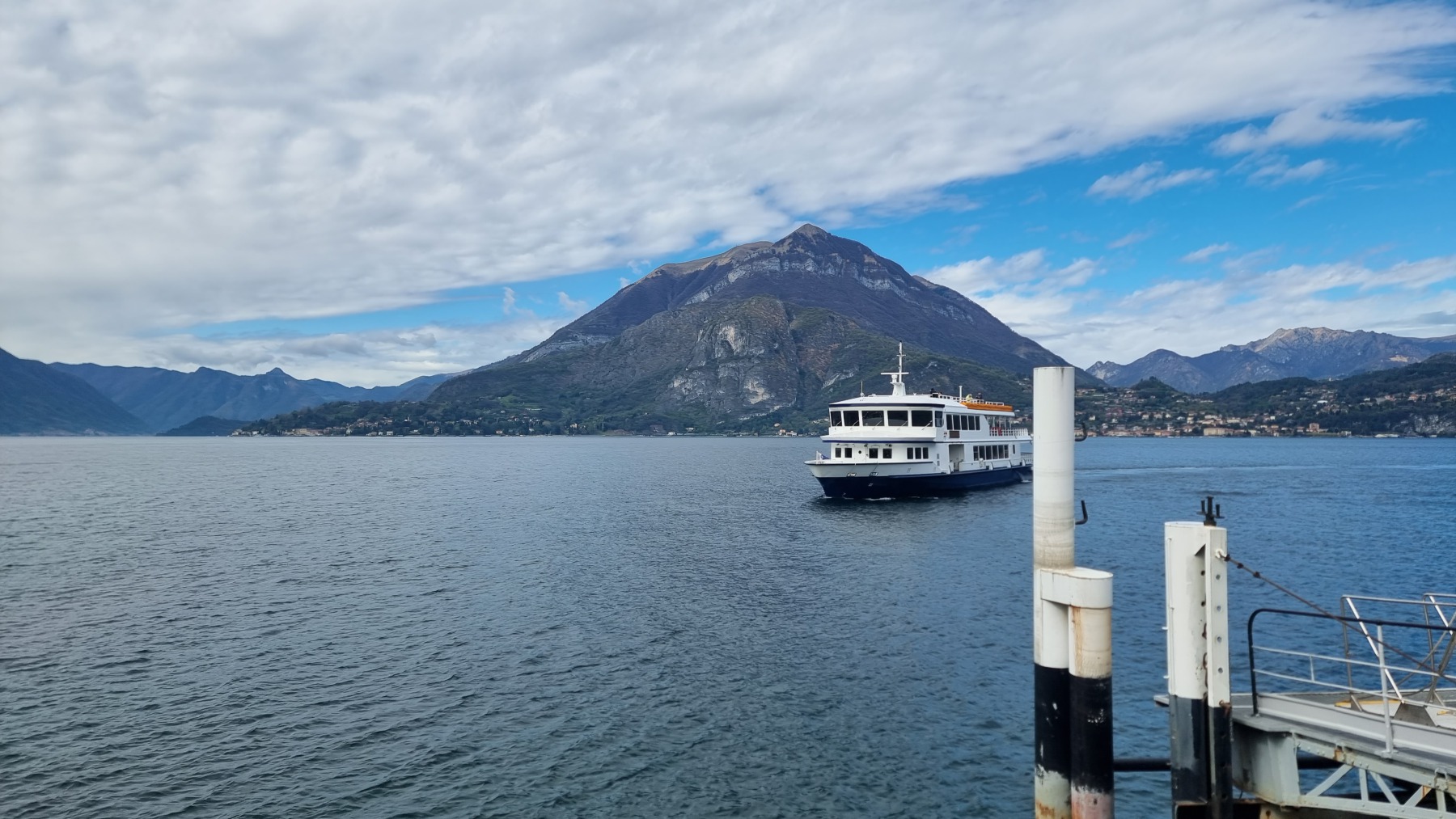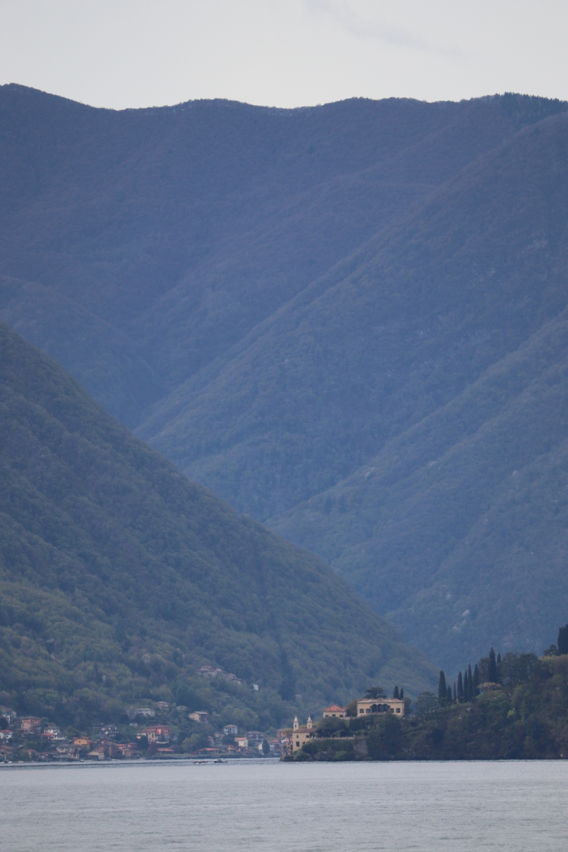 Am folgenden Tag fuhr ich früh morgens mit der Bahn von Bergamo an den Comer See, nach Varenna. Von Varenna nahm ich die Fähre bis Lenno. Die Fähre kreuzt den See in gemütlichen Tempo und läuft auf ihrem Weg mehrere Orte an. Ideal, um ein paar schöne Fotos vom See und den diesen umgebenden Gipfeln zu machen. Auf jeden Fall ein beeindruckendes Panorama.