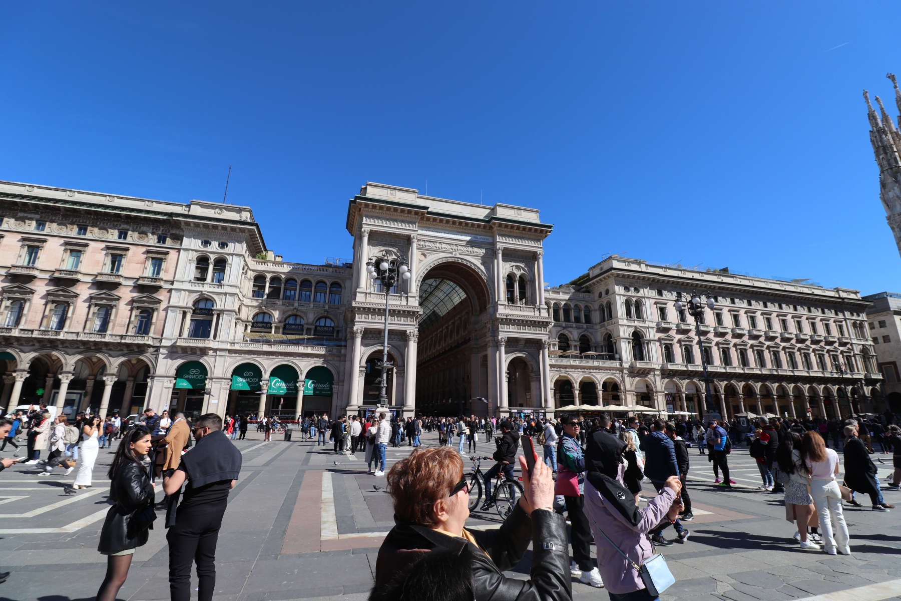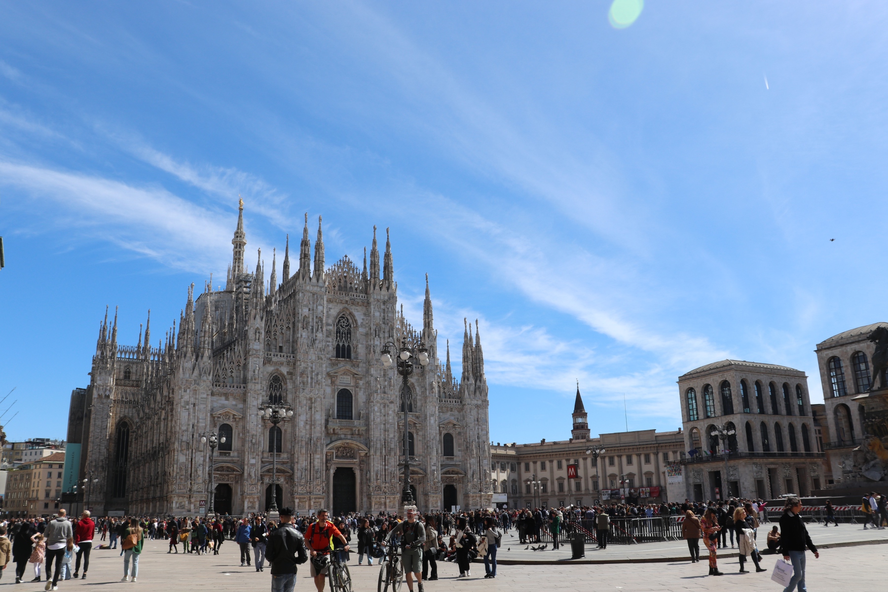 Der Bau des Mailänder Doms wurde 1386 in gotischem Stil begonnen, seine heutige neogotische Fassade erhielt er aber erst in napoleonischer Zeit, 1813 wurde sie fertiggestellt. Der Domplatz vor der Kathedrale wurde 1865 bis 1873 geschaffen.