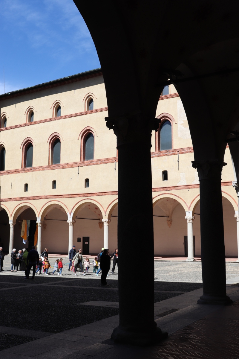 Vom Bahnhof machte ich mich ins Stadtzentrum auf. Vorbei ging es am Teatro alla Scala und durch die Galleria Vittorio Emanuele II, der ältesten überdachten Einkaufspassage der Welt, zum Domplatz. Eigentlich wollte ich direkt in den Dom, aber so leicht ist das nicht. Erst musste ich die passende App herunterladen, dann ein Zeitfenster buchen und bezahlen. Da ich nun noch etwas Zeit hatte, ging ich erst einmal zum Castello Sforzesco.