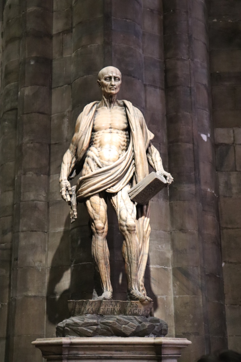 Nach vielen interessanten Perspektiven auf dem Dach ging es in den Dom hinein. Insbesondere die mächtigen Pfeiler haben bei mir ihren Eindruck hinterlassen. Unter den vielen Kunstwerken stach für mich die Statur des gehäuteten Heiligen Bartholomäus, aus dem Jahr 1562 heraus.