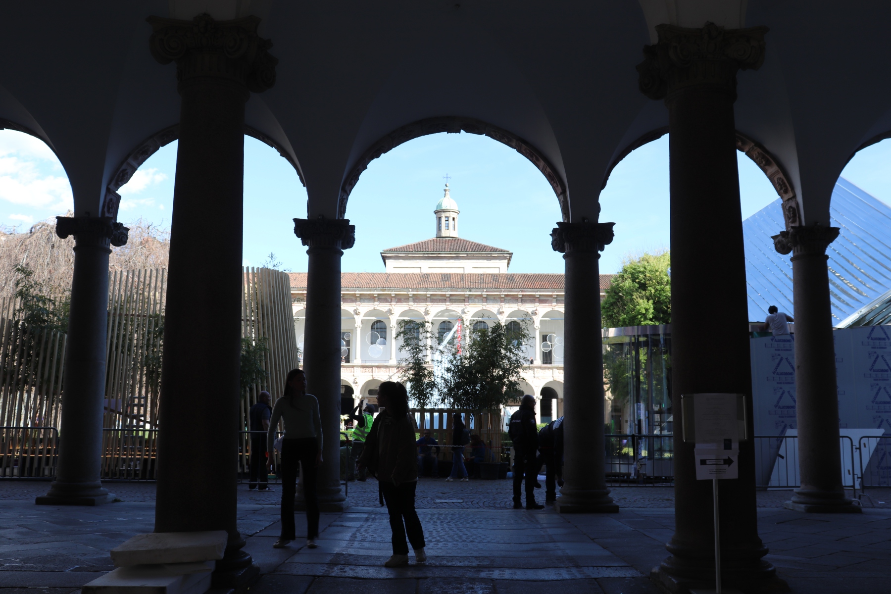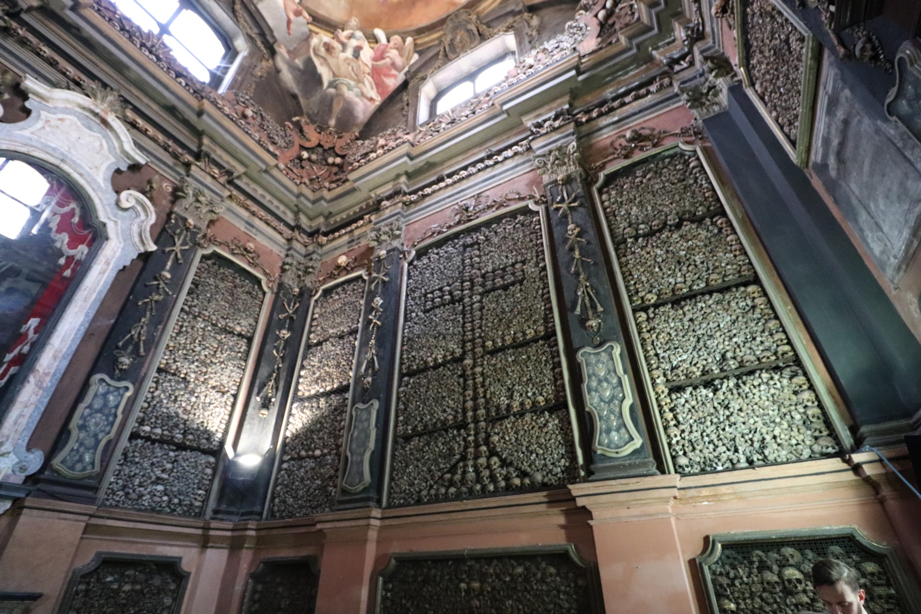 Hiernach lief ich noch etwas durch die Stadt. An der Universität vorbei ging es zum Santuario di San Bernardino alla Ossa. Den Blick zieht hier die Ossuariumskapelle an, in diesem Beinhaus sind die Wände kunstvoll mit Gebeinen gestaltet, die von aufgelösten Friedhöfen stammen.
